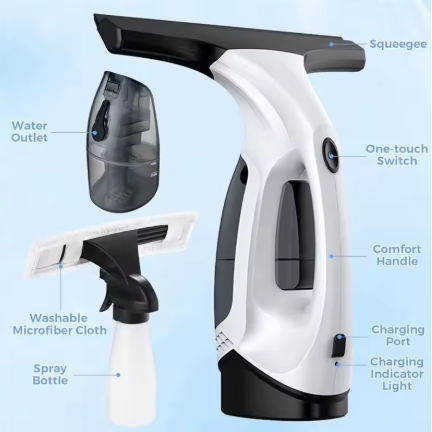 O Limpador de Vidros Elétrico Sem Fio é a solução prática e eficiente para limpar janelas, espelhos, boxes, vidros e superfícies lisas sem esforço.
