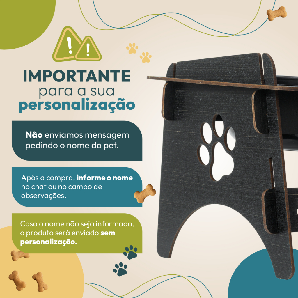 Se o seu fornecedor oferecer personalização, você pode adicionar o nome do pet no pedido (ajuste essa informação conforme o seu fornecedor).