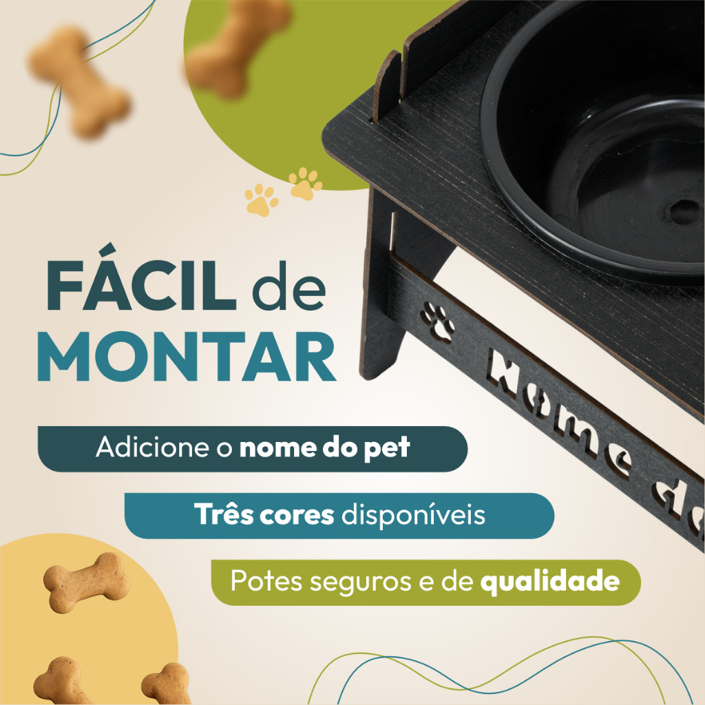 Por ser elevado, ele ajuda a deixar a refeição mais confortável para gatos e cães, além de reduzir aquela bagunça clássica no chão.