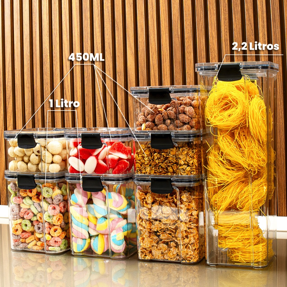 Kit de Potes Herméticos Porta-Mantimentos – Despensa Organizada e Alimentos Mais Frescos no Dia a Dia